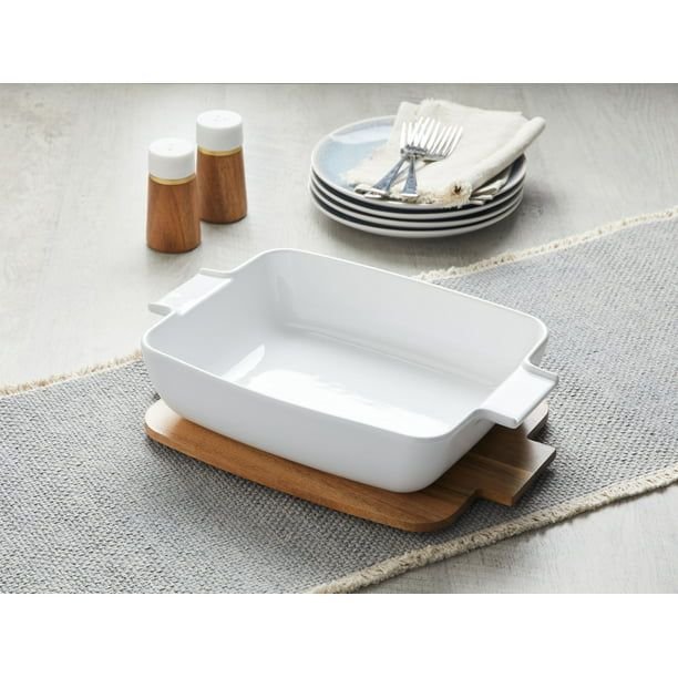 Better Homes & Gardens Ceramic Oven to Table Serveware Dish with Acacia Lid, 13.39 x 9.06 x 3.39 in Better Homes & Gardens Ceramic Oven to Table Serveware Dish with Acacia Lid, 13.39 x 9.06 x 3.39 in Better Homes & Gardens Ceramic Oven to Table Serveware Dish with Acacia Lid, 13.39 x 9.06 x 3.39 in