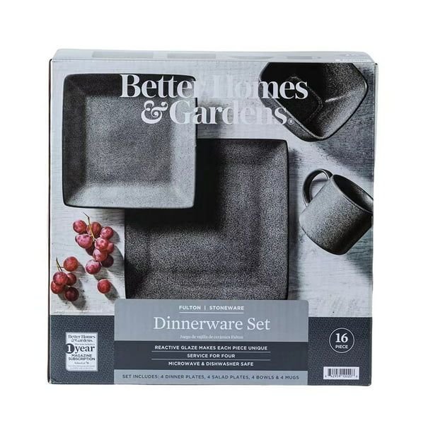 Home > Better Homes & Gardens- Dark Gray Square Stoneware 16-Piece Dinnerware Set