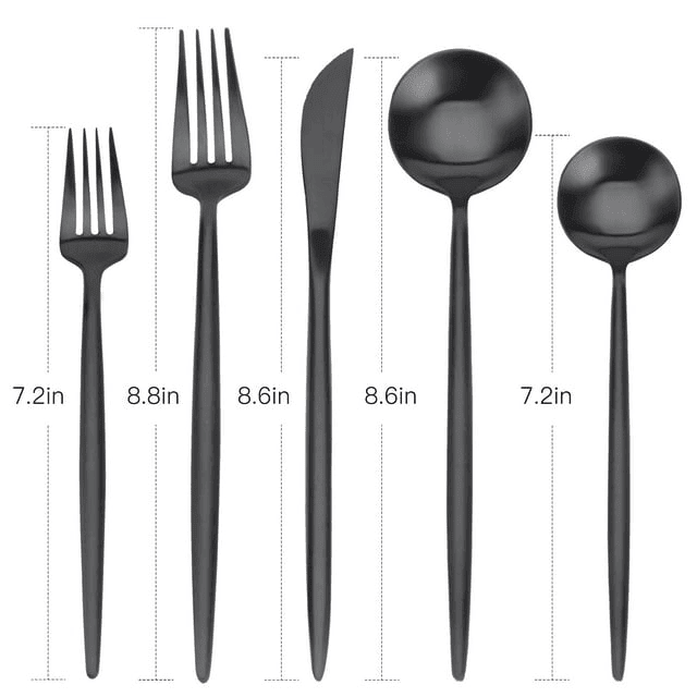 [20 pcs flatware set service for 4]: includes 4 dessert fork, 4 dessert spoons, 4 dinner forks, 4 dinner spoons, and 4 dinner knives . [luxury & elegant design]: the elegant rounded curves make them truly timeless, proper gauge thickness and weight to hold comfortably, is ideal for dinner parties, celebrations and wedding. [high quality material]: made of superior quality 18/12 stainless steel, satin finish, using advanced pvd technology, rustproof, high hardness, no distortion, lead-free, cadmium-free, phthalate-free, bpa-free durable and eco-friendly, matte finished, smooth edge no rough spots . [durable and safe]:the silverware set is dishwasher safe, also easy to hand wash, your proper care can make the utensil sets always looks as good as new, and enable it to last for many years
