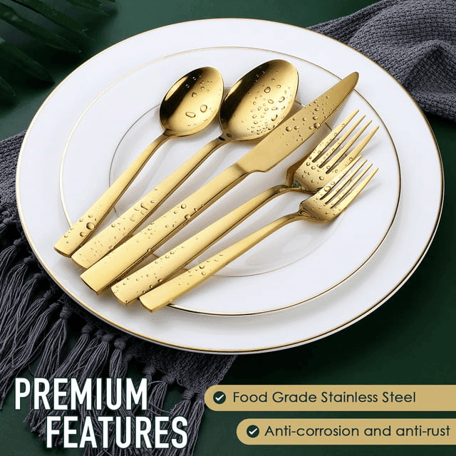 [food-grade 18/0 stainless steel]: the flatware set is made of 18/0 stainless steel which is durable and corrosion-resistant, rust-proof, non-toxic, bpa-free, healthy for your daily use. At the same time, good sturdiness ensures that it will not bend easily and always maintain a beautiful appearance.
