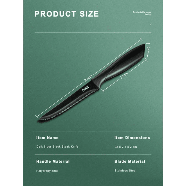 Serrated steak knife set deik 8-piece steak knife set features sharp, fully serrated stainless steel blades that cut effortlessly through meat.